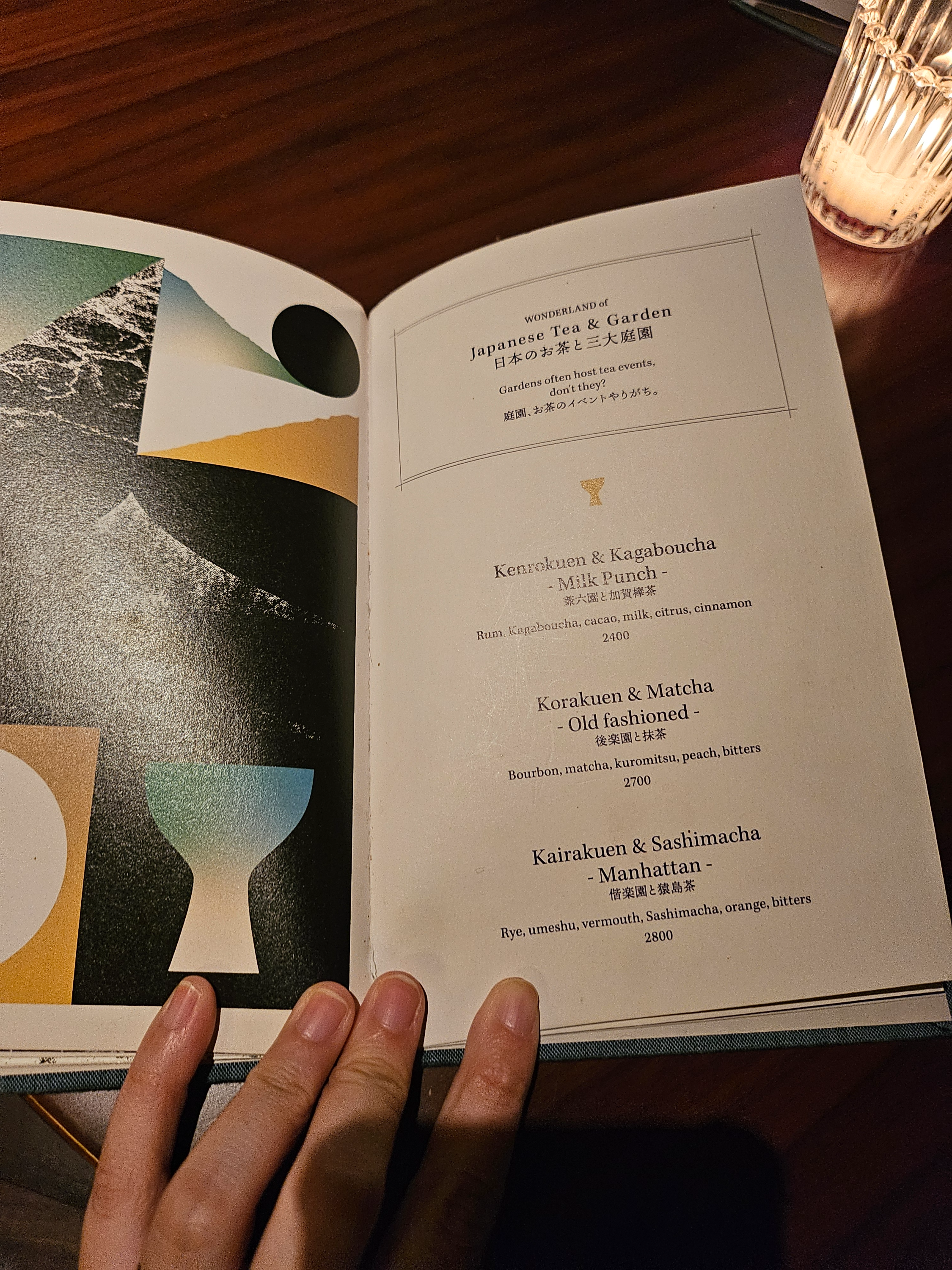 일본 3대 정원 이름과 일본 티가 적힌 메뉴들이네요. 카가보우차(호지차), 말차, 사시마차(녹차&볶은 현미)가 차례대로 주요 재료.